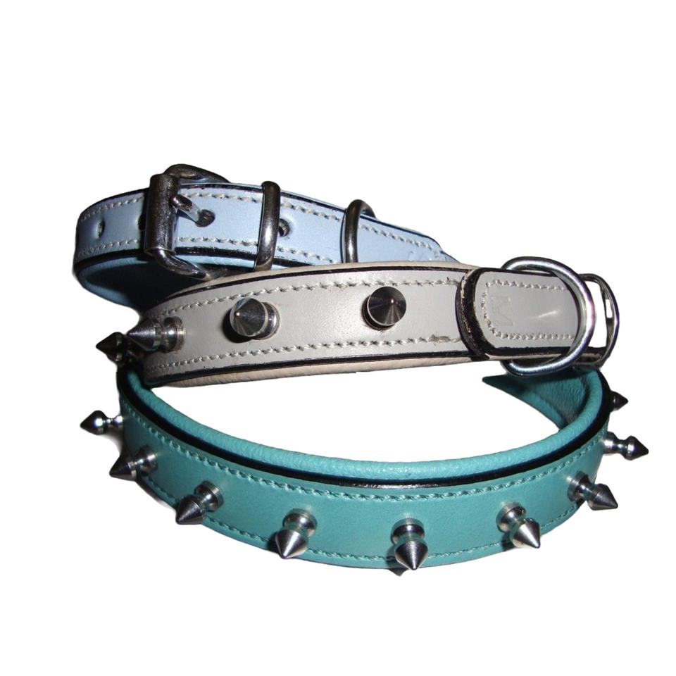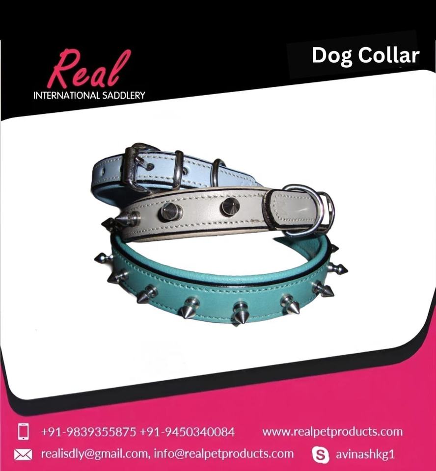 ปลอกคอสุนัขหนังแท้ลายสัตว์แฟนซีหมุดเงินประดับด้วยหมุดที่เป็นมิตรกับสิ่งแวดล้อม