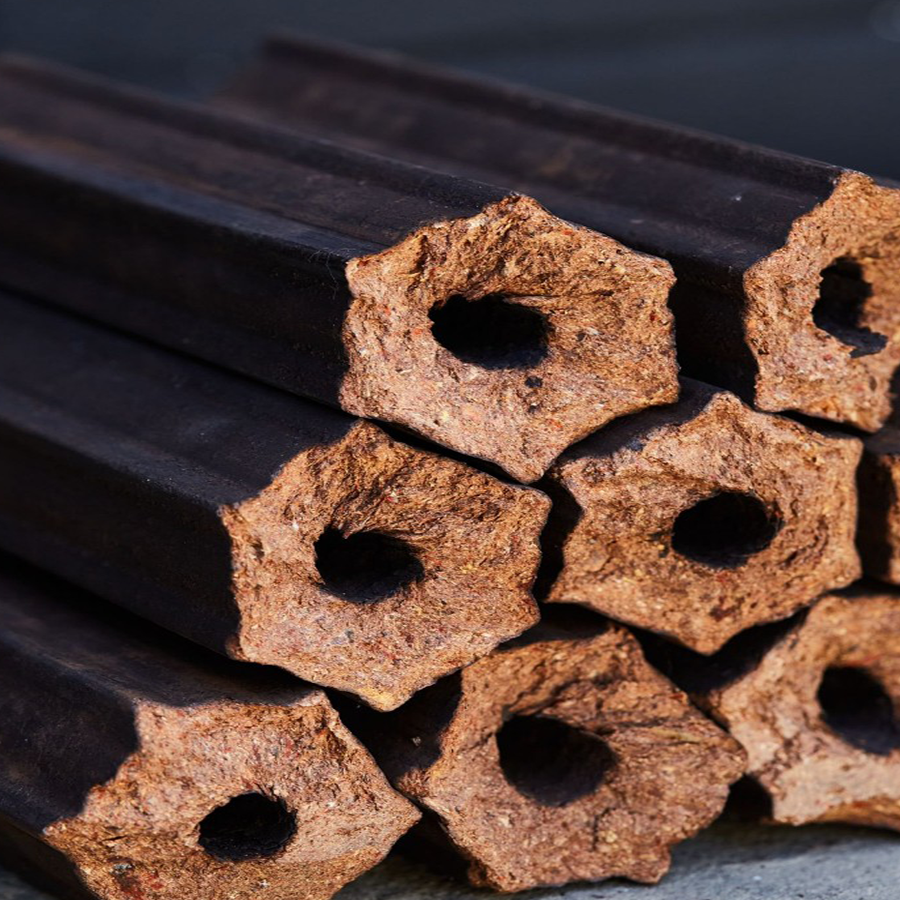 เครื่องอัดแท่งถ่านไม้ไผ่หกเหลี่ยมทำจากไม้เวียดนามพร้อมขี้เลื่อยไม้แข็งสำหรับเปลือกมอระกู่