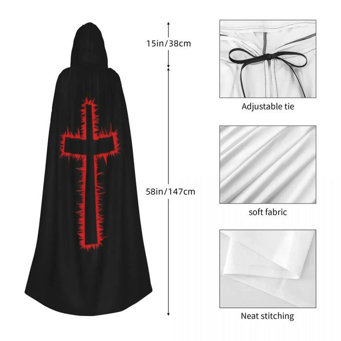 เสื้อคลุมอัศวินเทมพลาร์โพลีเอสเตอร์สีดำพร้อม RES CROSS คุณภาพระดับพรีเมียม