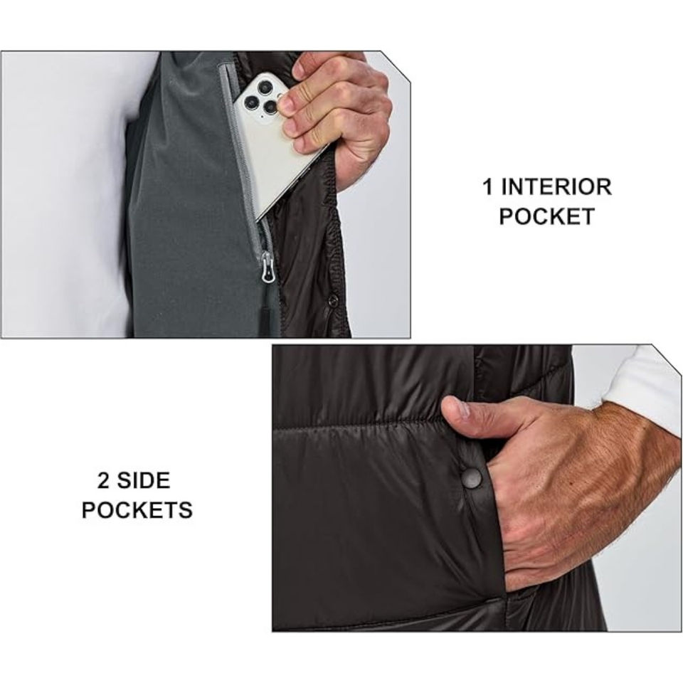 เสื้อกั๊กขนเป็ดน้ำหนักเบาสำหรับผู้ชายผ้าแคนวาสสำ100% ผ้าโพลีเอสเตอร์ผ้าใบกันลมมีซิป