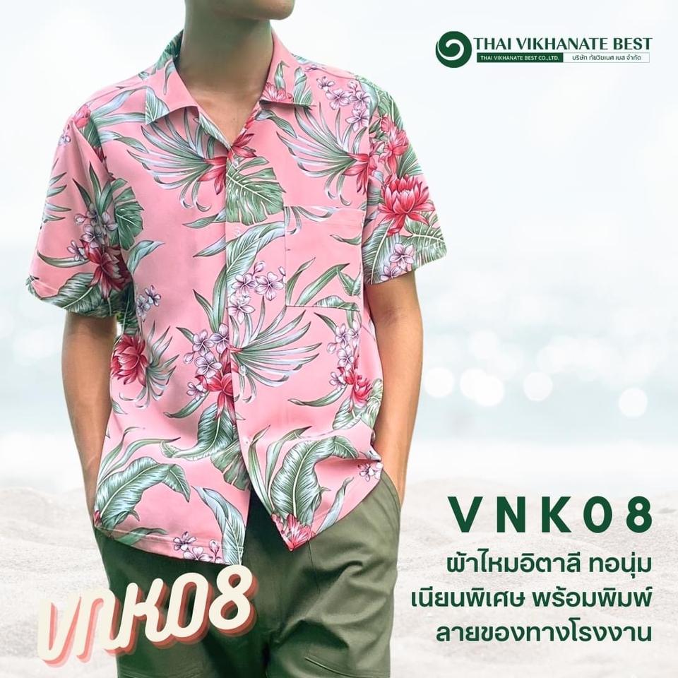 เสื้อเชิ้ตฮาวายลายดอกไม้แขนสั้นสำหรับผู้ชายเสื้อเชิ๊ตลำลองเส้นด้ายย้อมชุดชายหาดเสื้อเชิ๊ตจากประเทศไทย