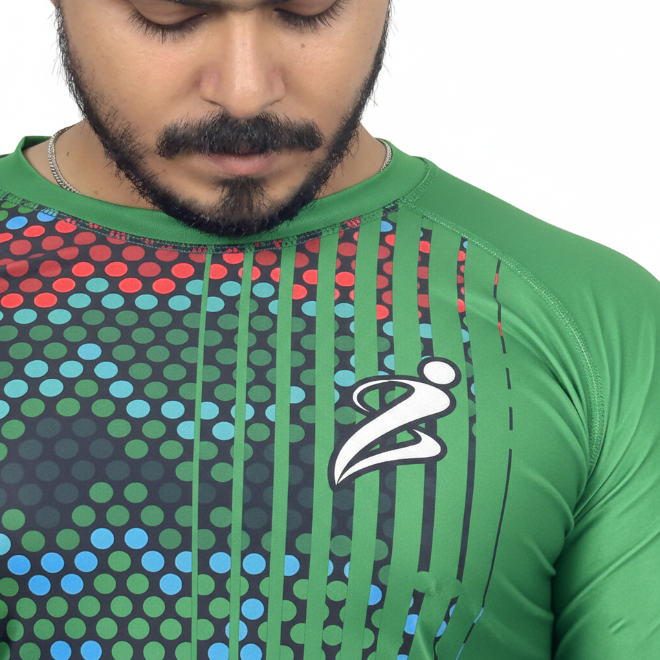 เสื้อแรชการ์ดแขนยาวผู้ชายคุณภาพพรีเมียมแบบขายส่ง ระบายอากาศได้ดี แห้งเร็ว ผลิตจากผ้าสแปนเด็กซ์/โพลีเอสเตอร์ รับสกรีนโลโก้