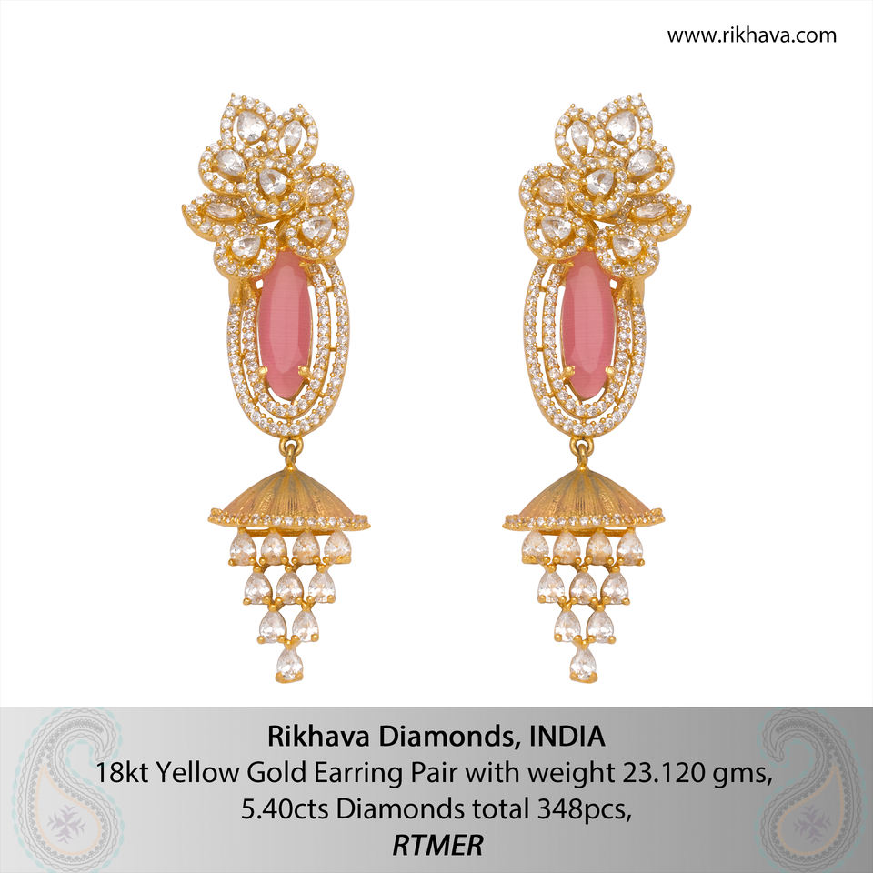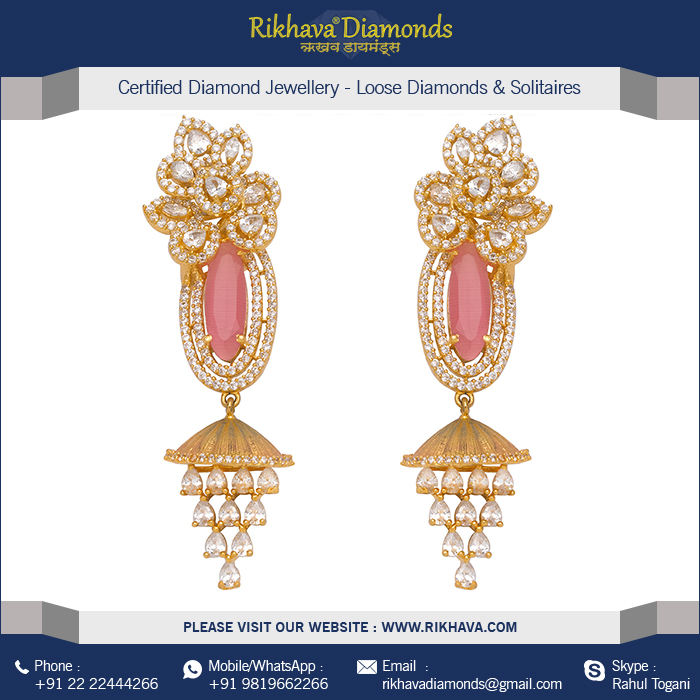 ต่างหูเพชรทรงกลมเจียระไนแบบบริลเลียนท์สีทองเหลืองคุณภาพพรีเมียมขายส่งสำหรับผู้หญิงสุดหรู