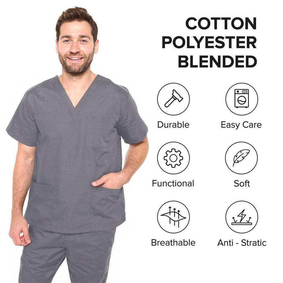 ชุดจ็อกเกอร์กางเกงผ้าแคนวาสสำหรับแพทย์ชุดวิ่งออกกำลังกายแขนสั้นคอวีออกแบบโลโก้ได้ตามต้องการ100% ผ้าฝ้าย