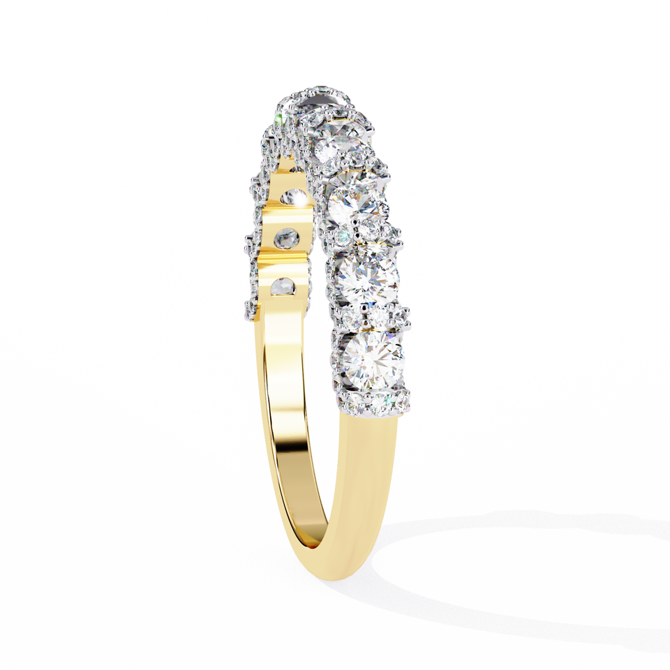 แหวนแต่งงานครึ่งเพชรสามเม็ดสีทองได้รับการรับรองจากห้องปฏิบัติการ VVS1 0.1CT D