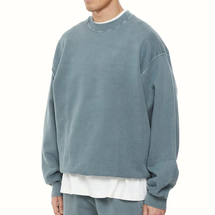 เสื้อสเวตเตอร์คอกลมผ้าคอตตอนขนาดใหญ่ซักด้วยกรดเสื้อมีฮู้ดเปิดไหล่มี100% เสื้อคอกลม