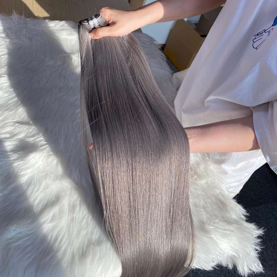 ผมต่อแบบเลมี่100% ติดหนังกำพร้าผมมนุษย์ผมตรงแนว Grey Bone ผมคน