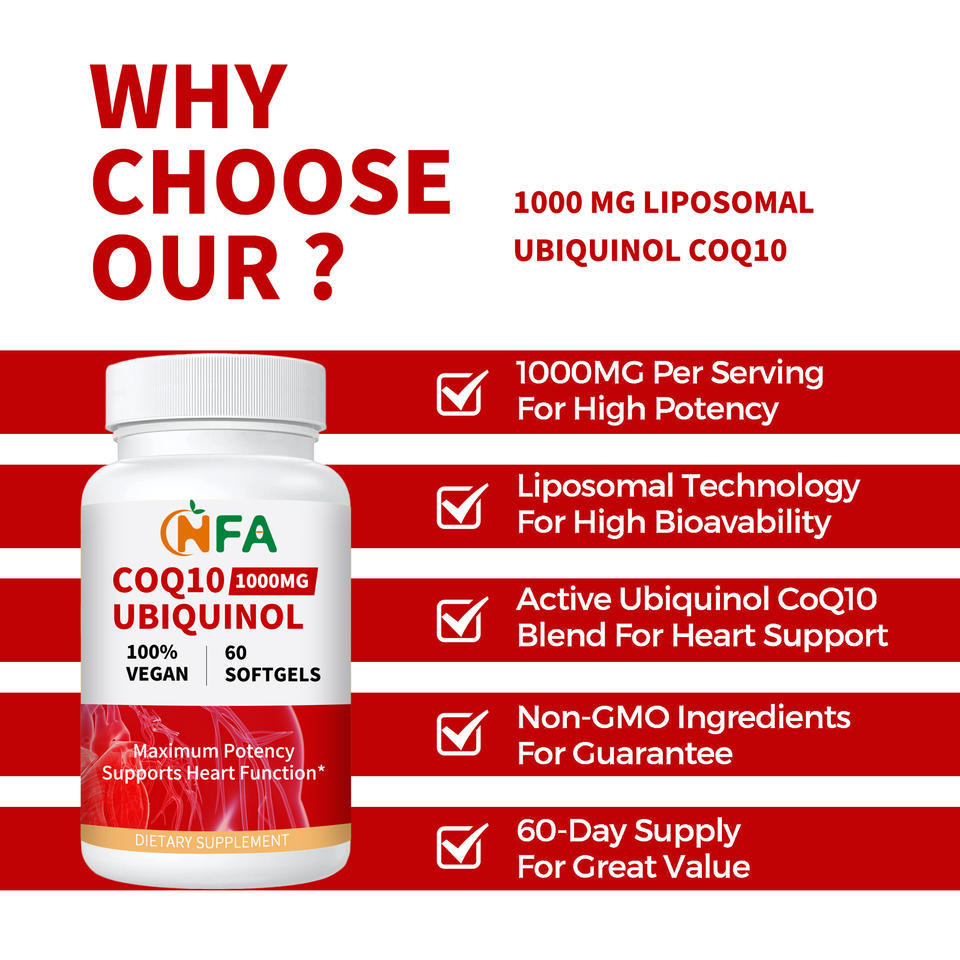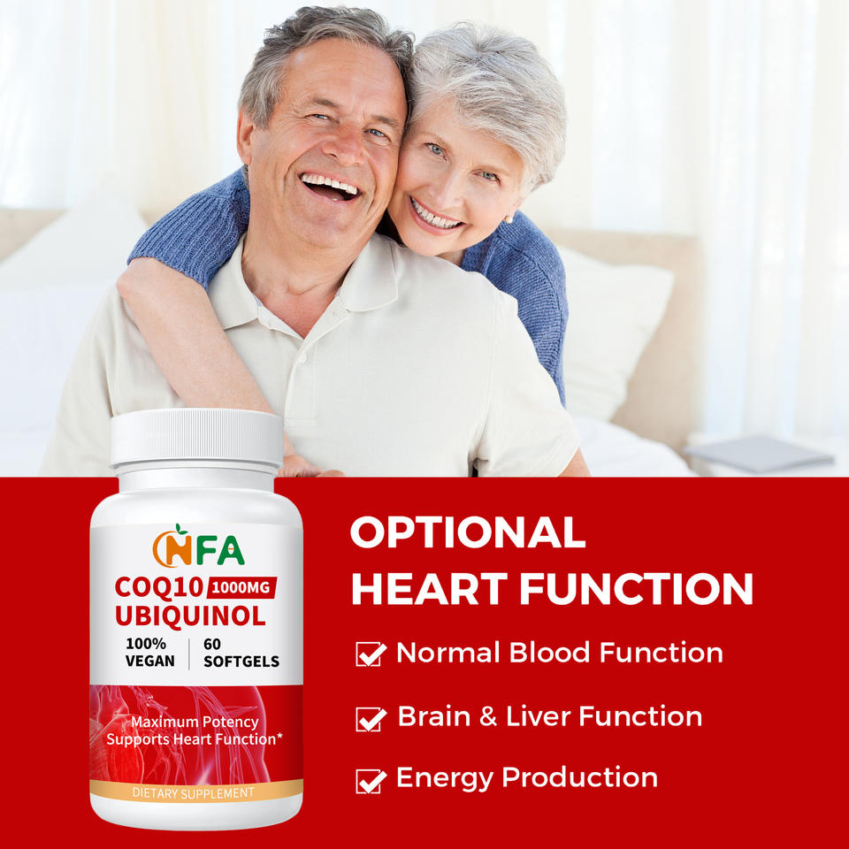 เจลนิ่ม COQ10 ubiquinol 1000มก. 100% นิ่มสนับสนุนการทำงานของหัวใจแบบมังสวิรัตินิ่ม60ชิ้น Coq10