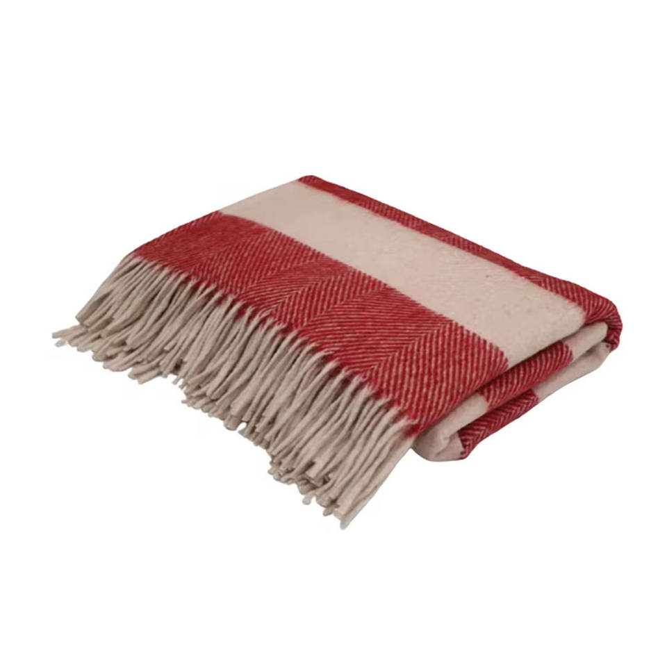 Striped Herringbones Cherry Red and Dusky Pink Blanket
