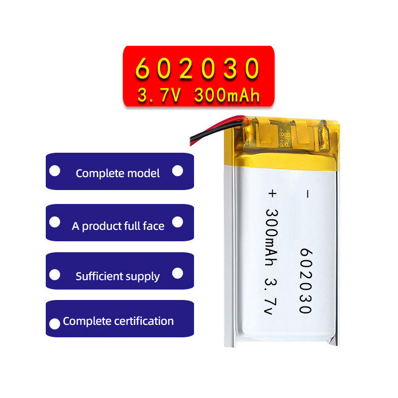 เซลล์แบตเตอรี่ลิเธียมโพลิเมอร์602030 300มิลลิแอมป์3.7โวลต์ขนาดเล็กสำหรับชาร์จสมบัติ