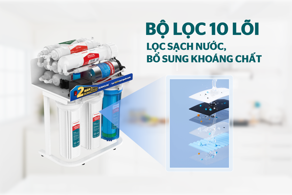 เครื่องกรองน้ำ RO 10ระดับ75GPD พร้อมก๊อกน้ำถาดพลาสติกซันเฮ้าส์เวียดนาม