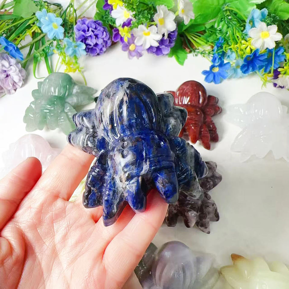 ราคาขายส่ง หินโรสควอตซ์ธรรมชาติขนาด 75 มม. หินบำบัดแกะสลักรูปสัตว์แมงมุม สำหรับตกแต่ง