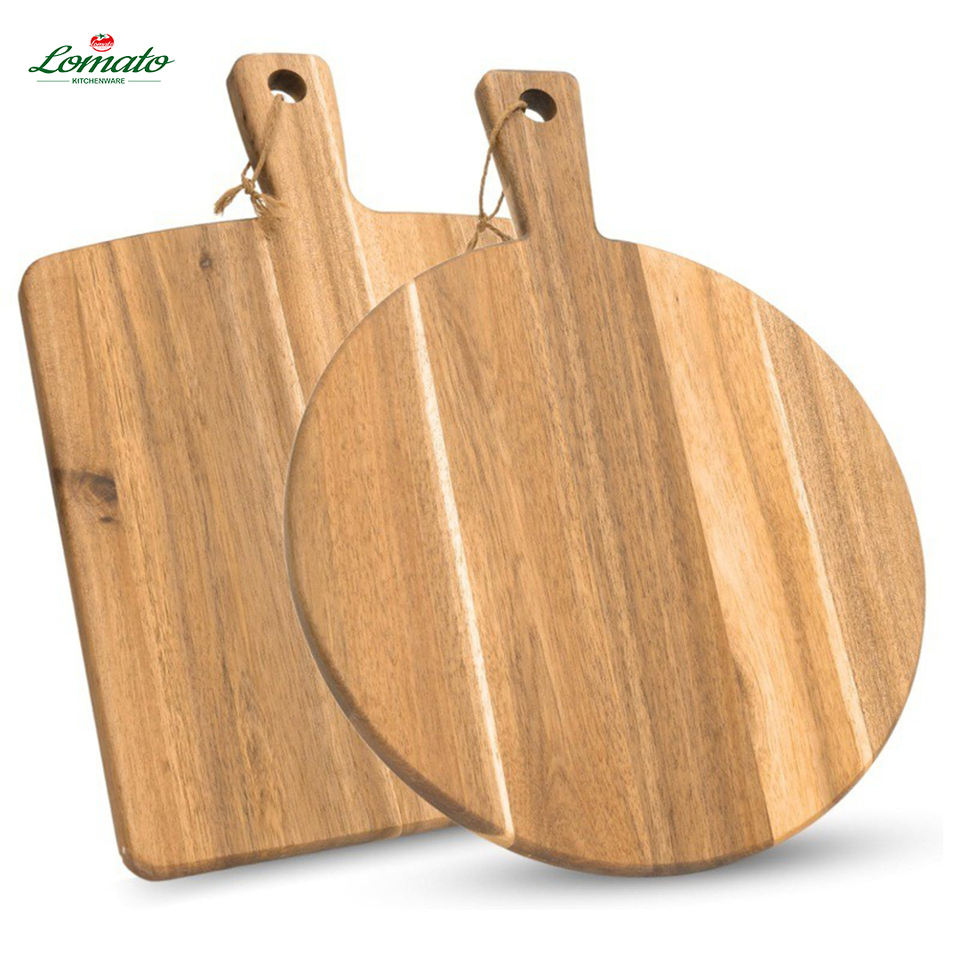 เขียงไม้อะคาเซียไม้พายพายขนมปังเนื้อชีสพร้อมที่จับเคาน์เตอร์ครัวเขียง
