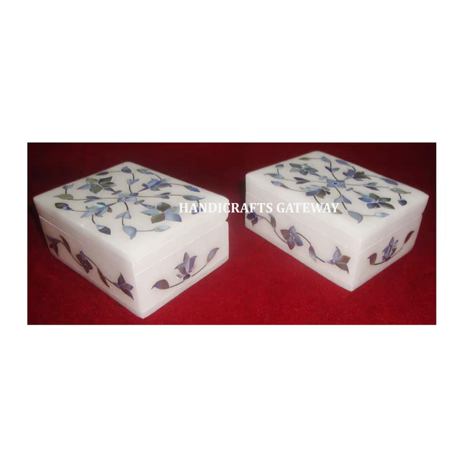 กล่องบรรจุภัณฑ์แบบฝังมุกสีขาวทำมือดีไซน์ลายดอกไม้หินอ่อนสีฟ้า