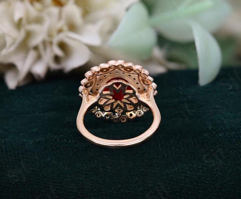 แหวนแต่งงานทับทิมประดับห้องแล็บแหวนดอกไม้น่ารักชุบโรสโกลด์มินิมอลของขวัญปาร์ตี้สำหรับภรรยา