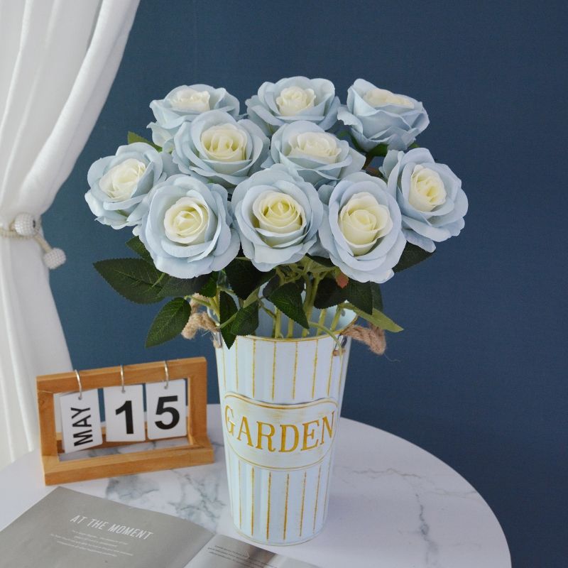 ดอกกุหลาบประดิษฐ์ราคาส่ง สัมผัสเหมือนจริง ทำจากผ้าไหม พร้อมใบสีเขียว ก้านเดี่ยว สำหรับตกแต่งงานแต่งงาน