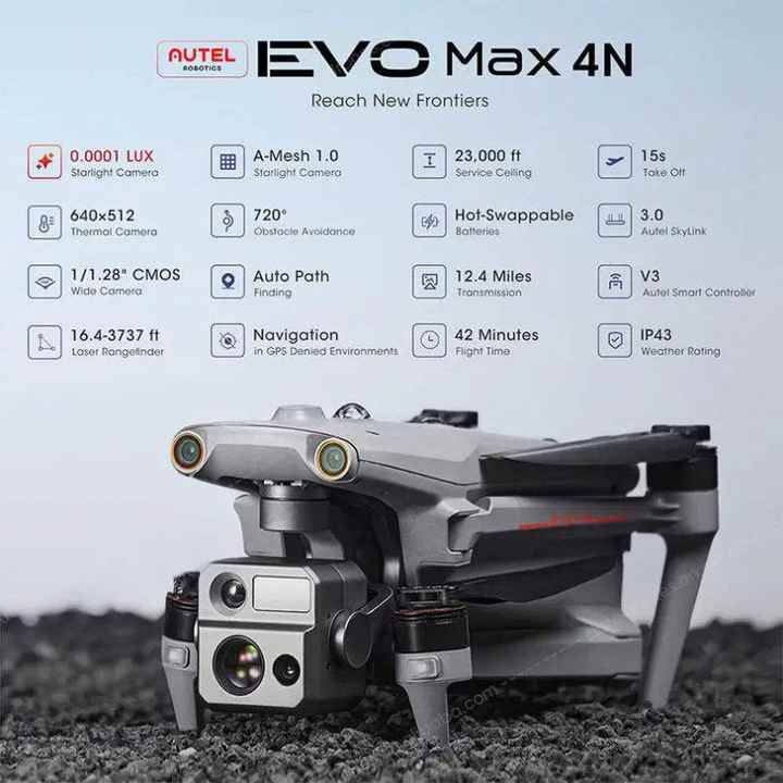 กล้องทำแผนที่กันน้ำระบบ UAV Autel EVO MAX 4N โดรนสำหรับ4N สูงสุดโดยมีคะแนน IP43