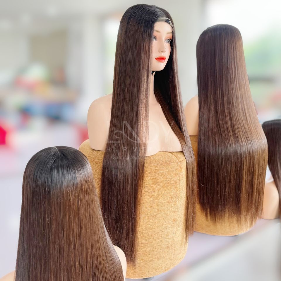 วิกผมแบบไม่มีกาวด้านหน้าทำจากผมมนุษย์ชาวเวียดนามสีน้ำตาลตรงกระดูกสำหรับผู้หญิงผิวดำ