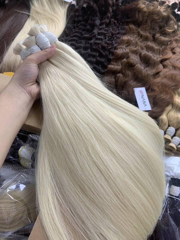 ราคาส่งผมแท้เวอร์จิ้นเรมี่เวียดนามแบบตรงจาก Nasa Hair ต่อผมแบบเครื่องเย็บสองชั้น แข็งแรง เงางาม น้ำหนัก 100 กรัม สีเข้ม
