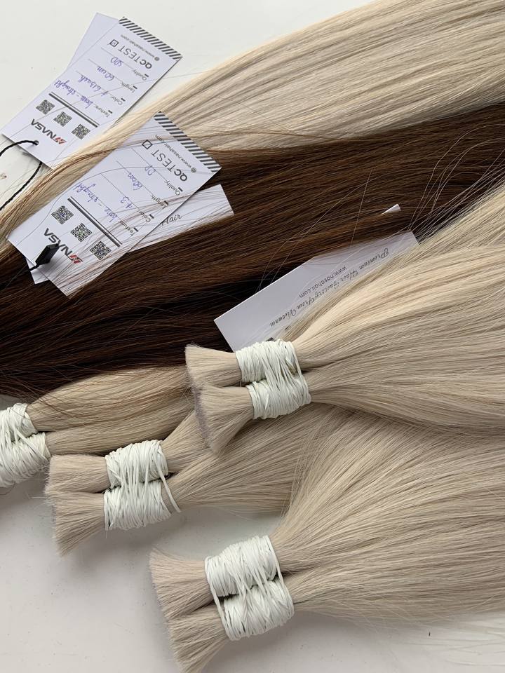 ผมต่อแบบมนุษย์แท้เวียดนามขนาด24นิ้วสีอ่อน100กรัมแบบสองชั้น