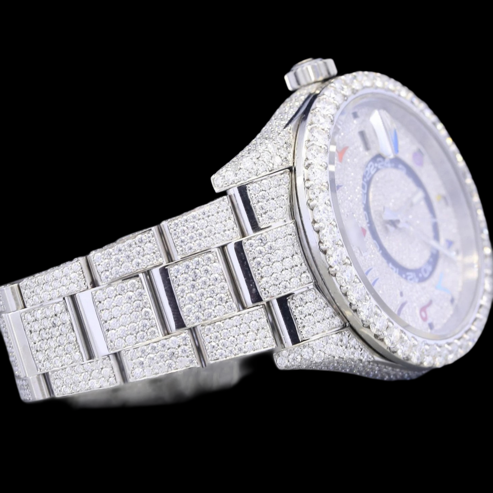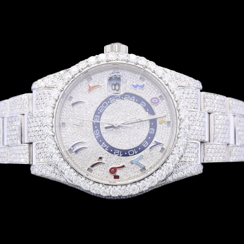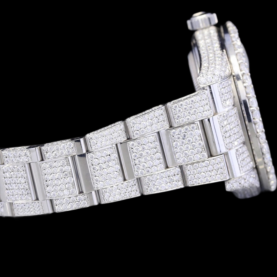 นาฬิกาฮิปฮอปแบบกำหนดเองได้ พร้อมฟังก์ชั่นวันที่อัตโนมัติ ตัวเลขแบบอารบิก ประดับเพชรโมอิสซาไนต์ ราคาขายส่ง