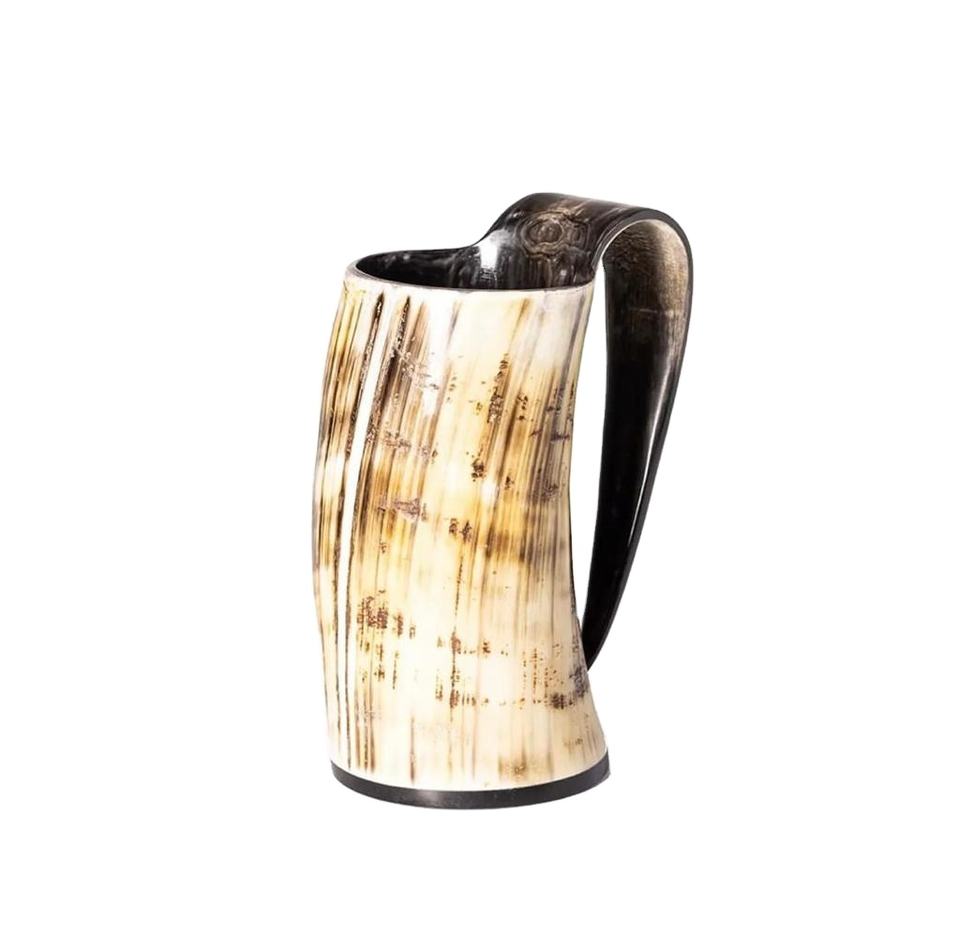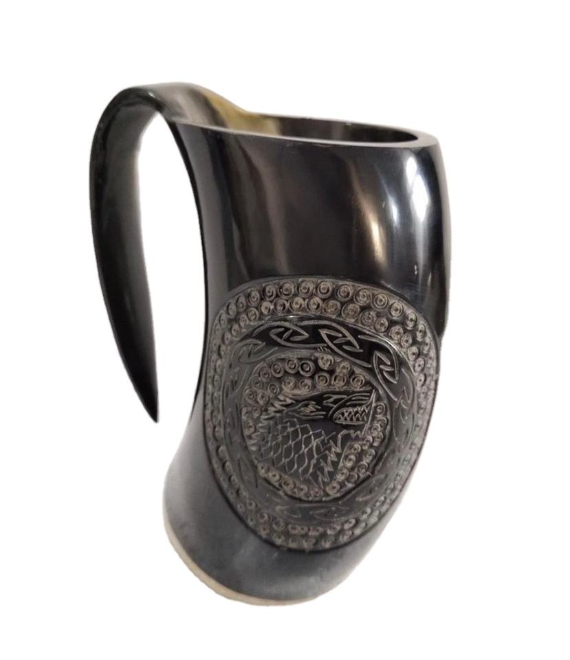 แก้วมักทรงแตรแกะสลักด้วยมือโอดินแก้วมักทำจากฮอร์นธรรมชาติสำหรับดื่มแก้วกาแฟ