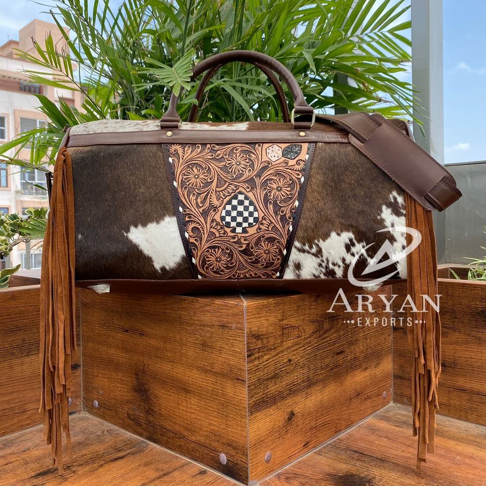 กระเป๋าทรงดัฟเฟิลทำจากหนังแท้ลายหมากรุก