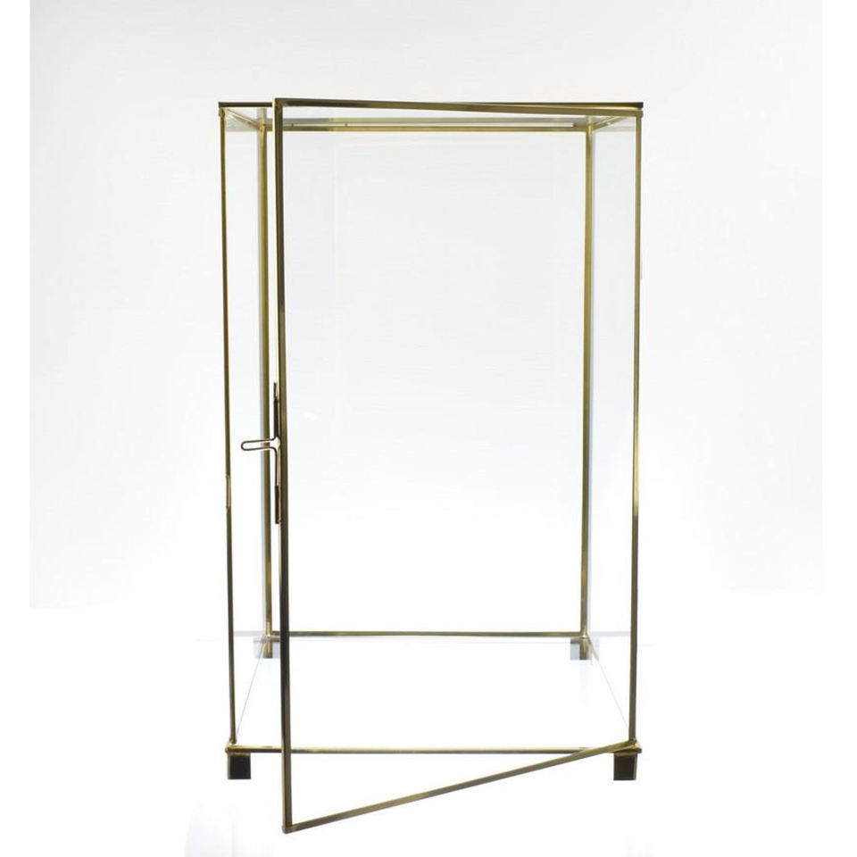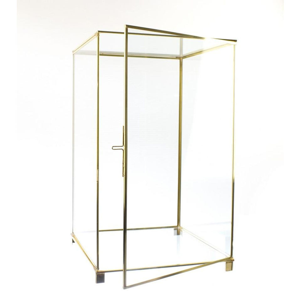 ตู้โชว์ขนาดใหญ่กระจกใสพร้อมประตูกล่องเครื่องประดับสำเร็จรูปสีทองกล่องอุปกรณ์เสริม
