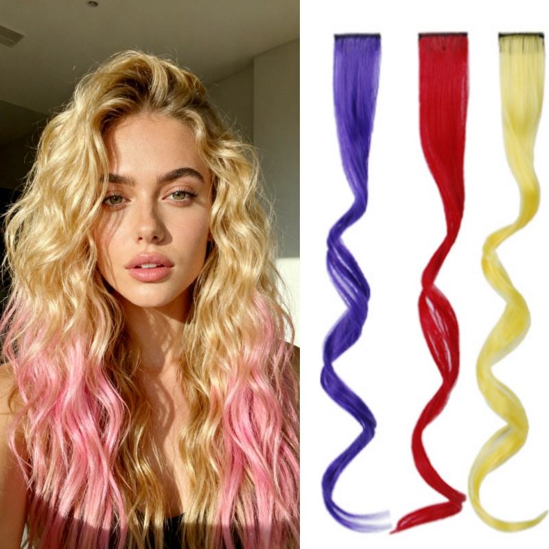 วิกผมสังเคราะห์แบบคลิปต่อผมลอนสีสันสดใสสำหรับสาวๆ