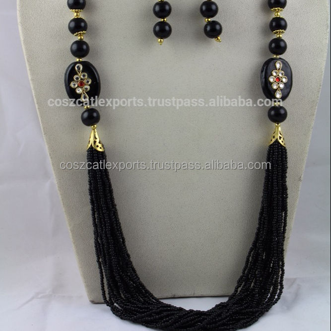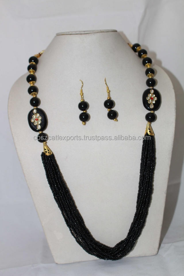 Wholesale Price Crystal Black Glass Beads Small Chunky Statement Necklace Fashion Simple Plain Women Jewelry Men Gift