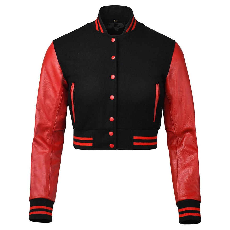 แจ็กเก็ตเสื้อบาสเก็ตบอลของผู้หญิงเสื้อครอปเลตเทอร์แมนแบบสั้นระบายอากาศได้โลโก้ออกแบบได้ตามต้องการ