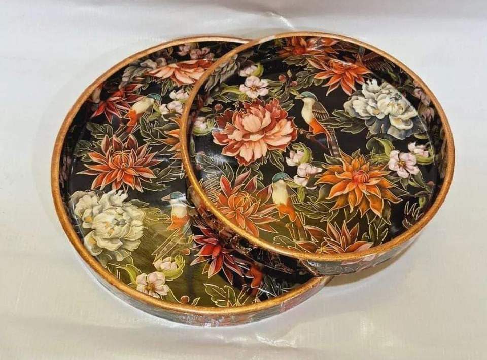 ราคาขายส่งที่กําหนดเองการออกแบบใหม่ไม้เคลือบพิมพ์ถาดชาอาหารเช้าขนมหวานผลไม้รอบแผ่นไม้สําหรับรับประทานอาหารกาแฟ