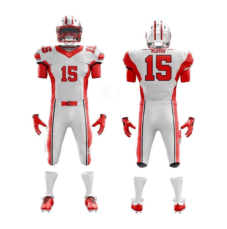 ชุดยูนิฟอร์มอเมริกันฟุตบอลแบบสั่งทำขายส่ง แขนสั้น แห้งเร็ว ระบายอากาศได้ดี สำหรับทีมกีฬา