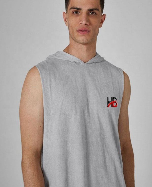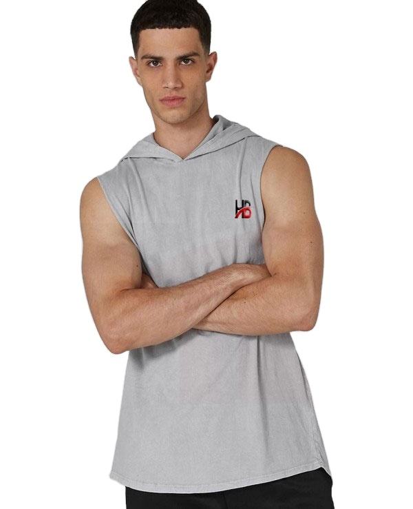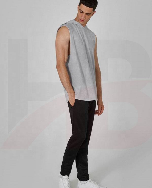 เสื้อฮู้ดดี้ผู้ชายแบบไม่มีแขน สีเทาเฮเธอร์ ผลิตตามสั่ง ราคาขายส่ง ผ้าฝ้าย 100% ระบายอากาศได้ดี แห้งเร็ว เหมาะสำหรับใส่ออกกำลังกาย