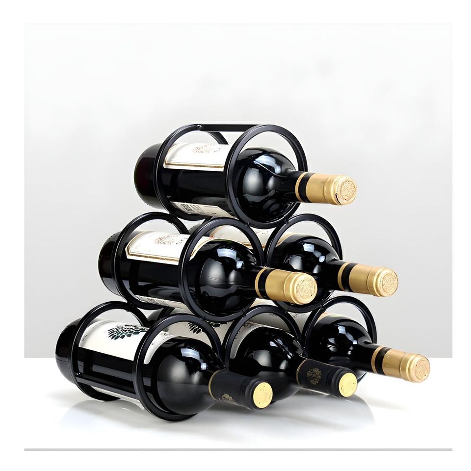 ชั้นวางขวดไวน์แบบลวดสีดำ 6 ขวด ซ้อนกันได้ สำหรับตกแต่งบ้าน บาร์ โชว์ขวดแชมเปญ ราคาขายส่ง