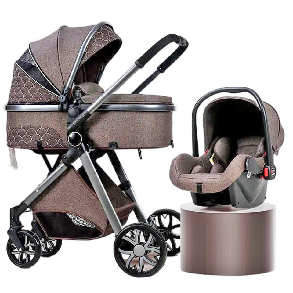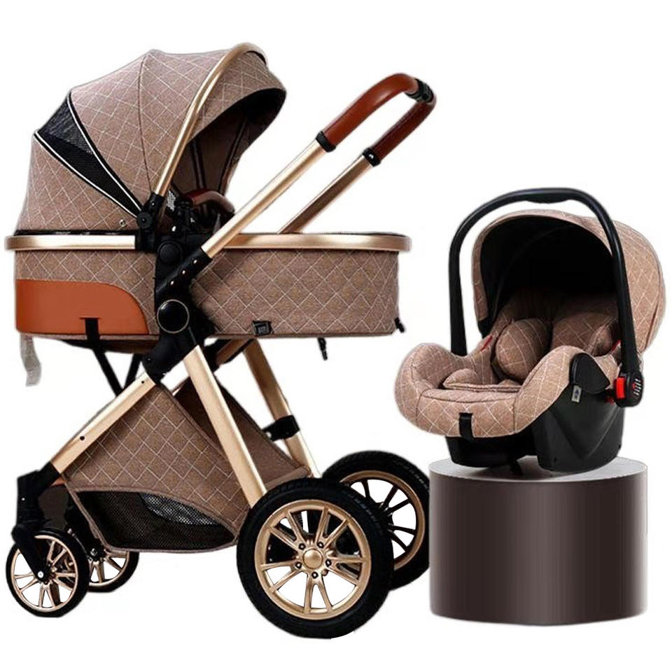 รถเข็นเด็กทารกแบบ3 in 1ทำจากอะลูมิเนียมอัลลอยรถเข็นแบบพับได้หรูหรา EN1888สำหรับการเดินทาง