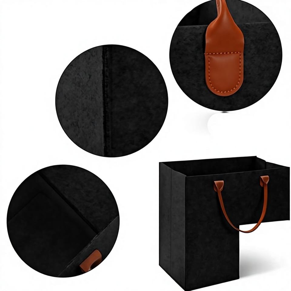 Large Capacity Strong Felt Laundry basket with PU leather handle