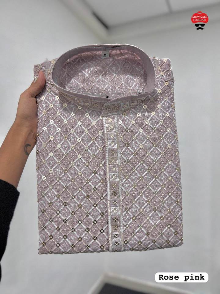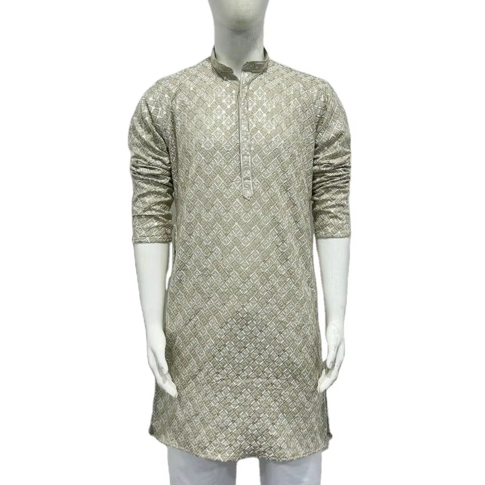 ชุดคุर्ตาและกางเกงขายส่งสำหรับผู้ชาย แบบดั้งเดิมสำหรับฤดูร้อน ตกแต่งด้วยงานปักขนสัตว์เทียม ความยาวระดับเข่า เหมาะสำหรับงานต่างๆ และงานเลี้ยง