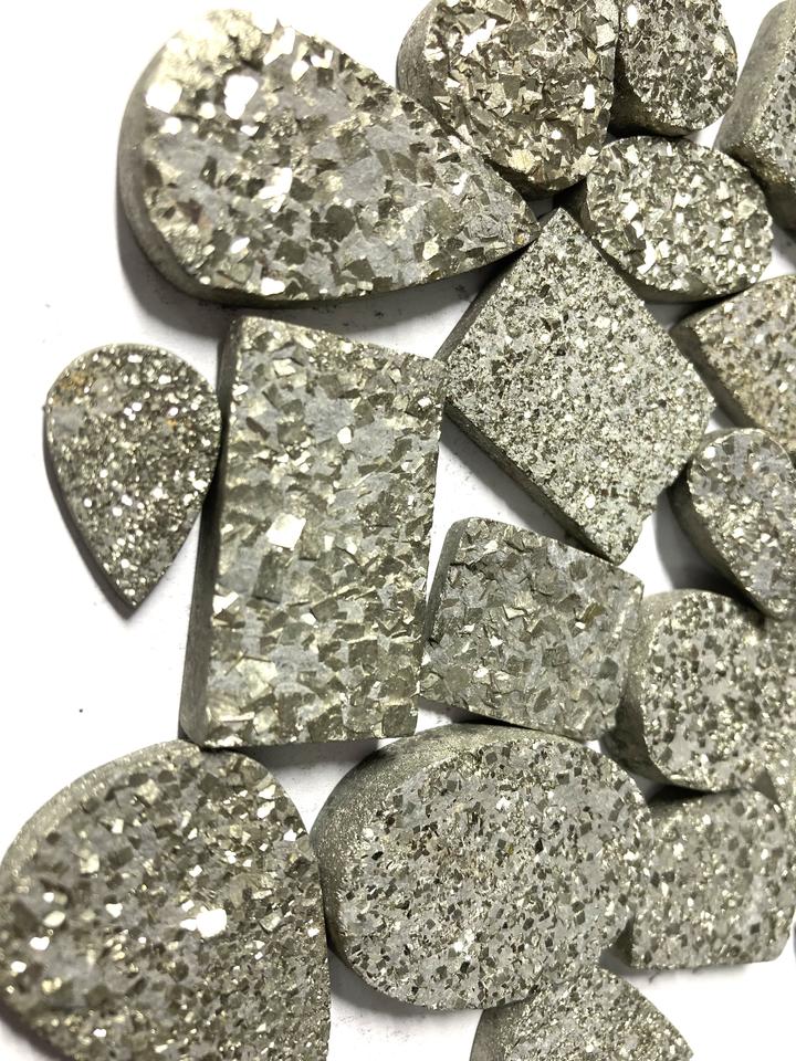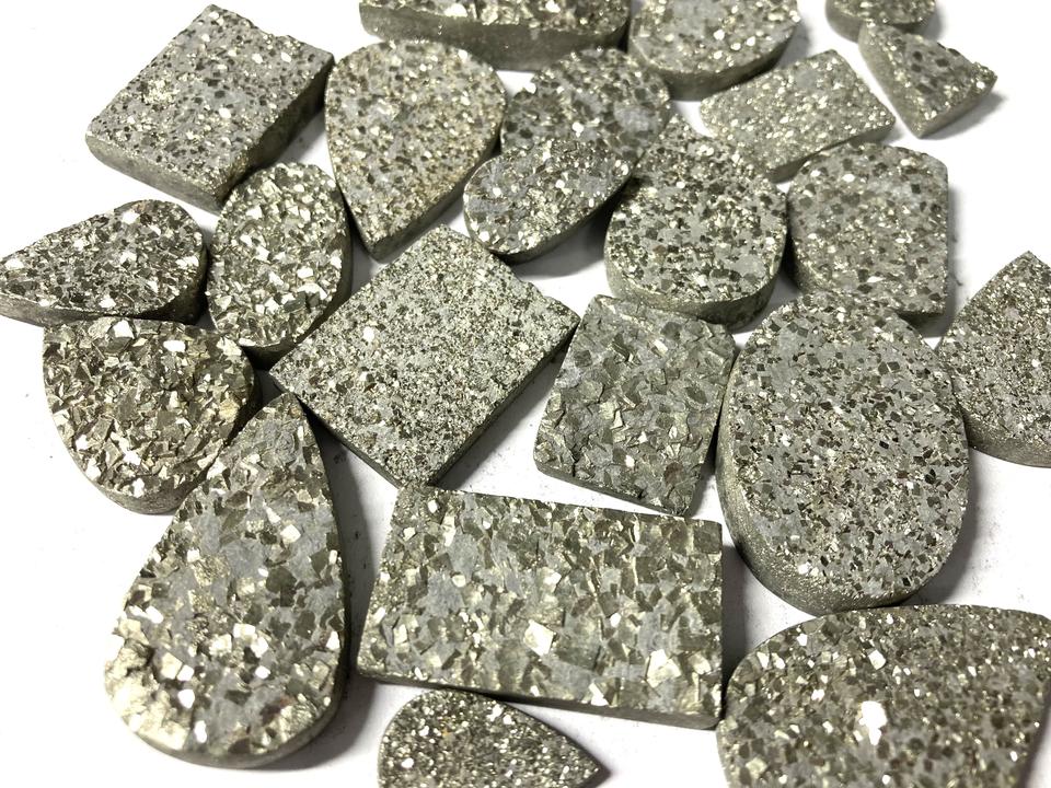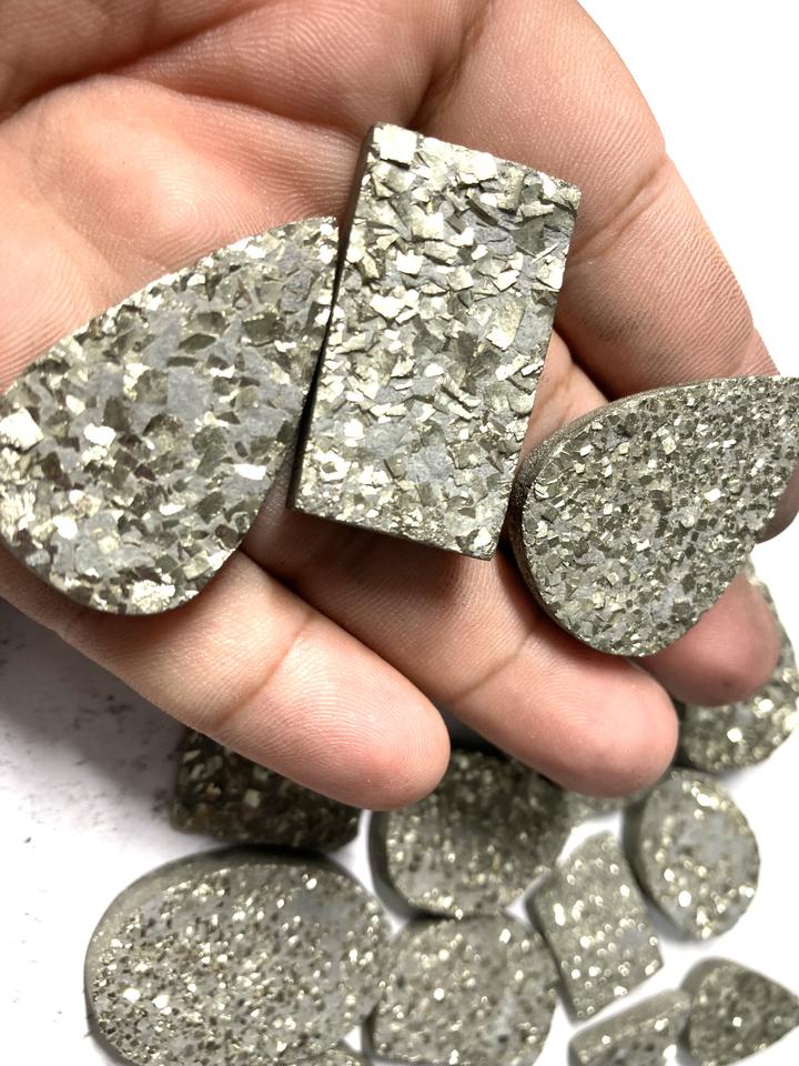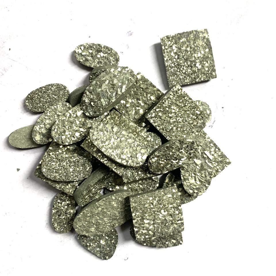 ราคาขายส่ง แฟชั่นแชนแนล พลอยไพไรต์สีทองธรรมชาติ เกรด AAA รูปทรงหลวมแบบคาโบชอง คละรูปทรง/สำหรับทำเครื่องประดับแบบราชสถาน ได้รับการรับรองจาก IGI