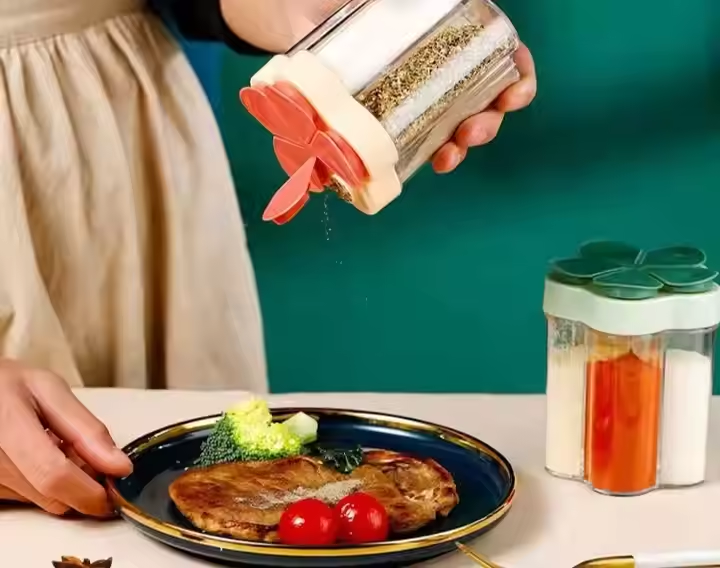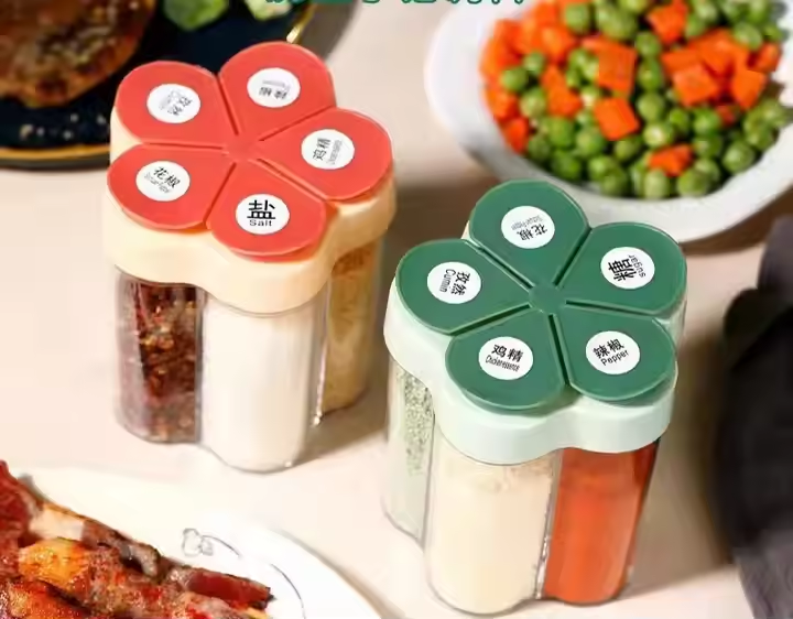 ราคาขายส่ง ขวดเครื่องปรุงครัวแบบ 5 in 1 สำหรับใช้ในครัวเรือน กล่องใส่ผงปรุงรส ผงชูรส ขวดหลากสี