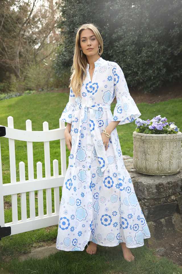เดรสแม็กซี่ยาวสไตล์ยิปซีโบฮีเมียนแขนสามส่วนพิมพ์ลายดอกไม้