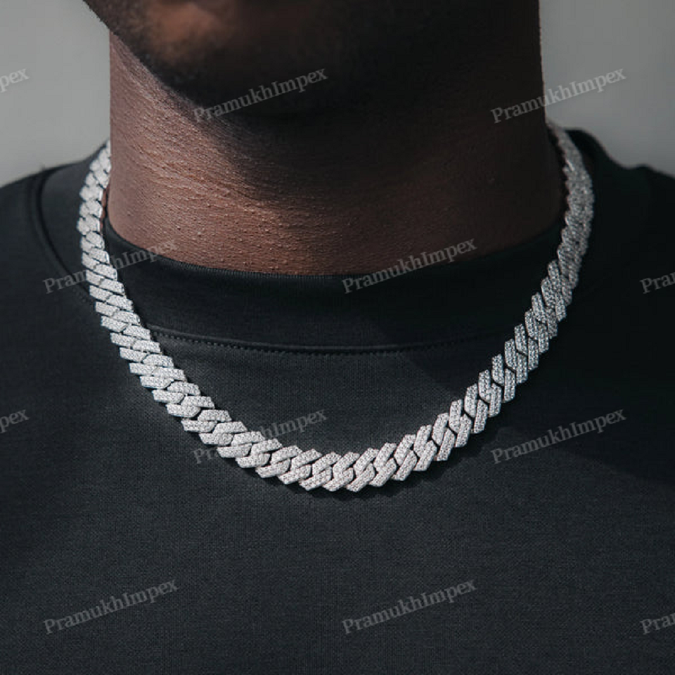 สร้อยคอเพชรโมอิสชุบทองคำขาวขนาด14K ประดับเพชรขนาด12มม.