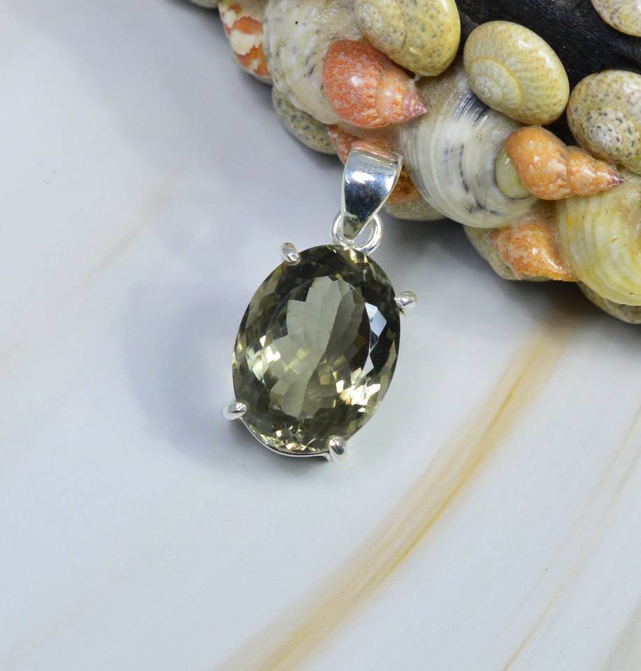 พลอยอเมทิสต์สีเขียวแท้ทรงไข่เหลี่ยมเพชรพลอยแข็ง925เงินแท้จี้แฮนด์เมดและเสน่ห์สำหรับเครื่องประดับ
