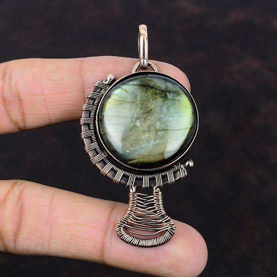 ราคาขายส่ง จี้หินมาลาไคต์ทรงพีระมิด งานแฮริ โอม ครีเอชั่นส์ วินเทจ ทองเหลืองชุบทอง หุ้มด้วยลวด หินประจำเดือนเกิด