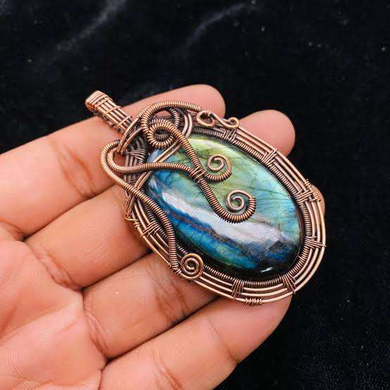ราคาขายส่ง จี้หินมาลาไคต์ทรงพีระมิด งานแฮริ โอม ครีเอชั่นส์ วินเทจ ทองเหลืองชุบทอง หุ้มด้วยลวด หินประจำเดือนเกิด