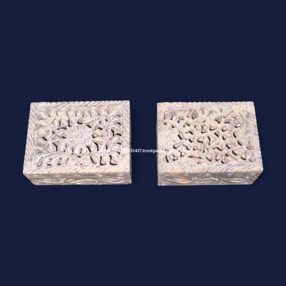 กล่องเครื่องประดับหินสบู่แกะสลักด้วยมือขนาด10x7.5สำหรับใส่แหวนและต่างหู