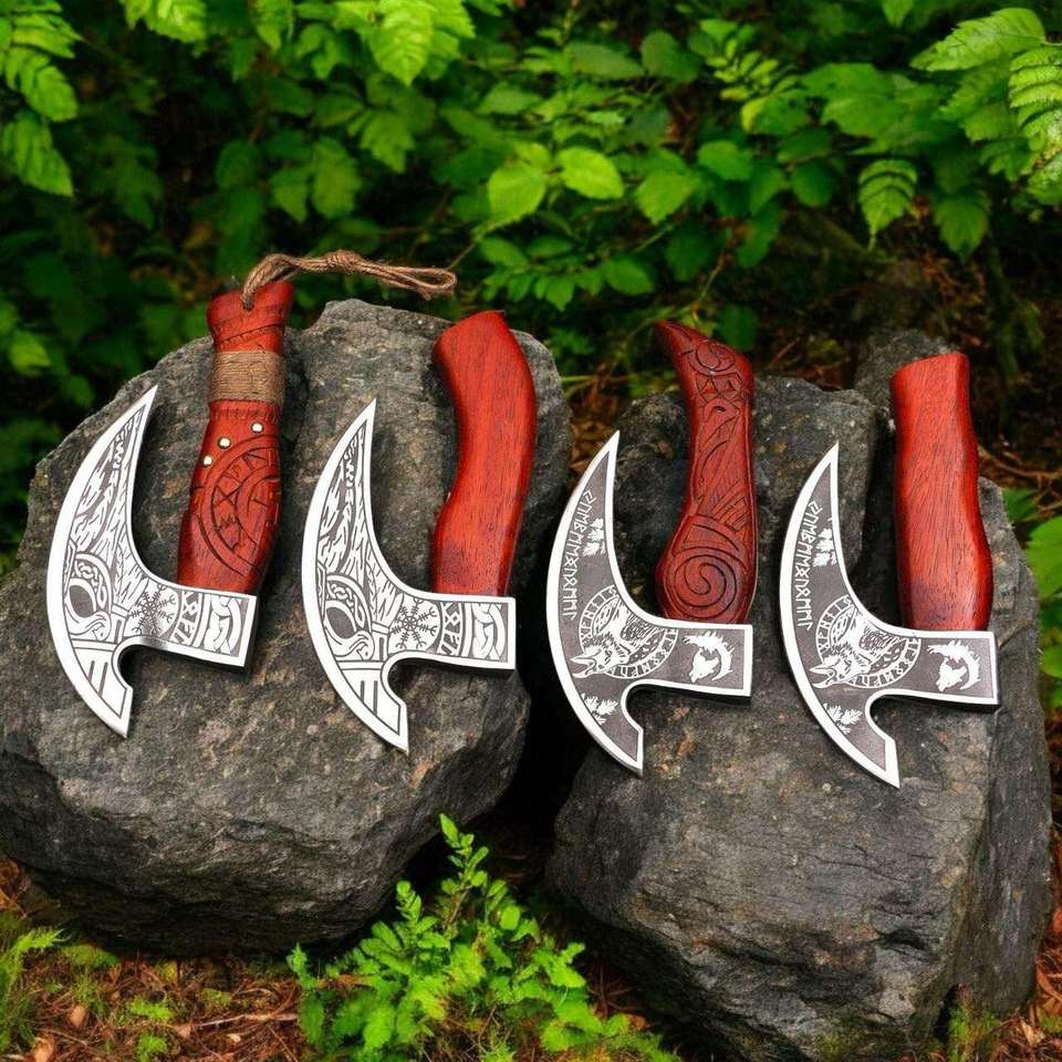 ราคาขายส่ง มีดตัดพิซซ่าแบบขวานไวกิ้ง ทำมือ คุณภาพอุตสาหกรรมและงาน DIY ผลิตจากเหล็กกล้าคาร์บอนสูง พร้อมปลอกหนังสลักลายตามสั่ง