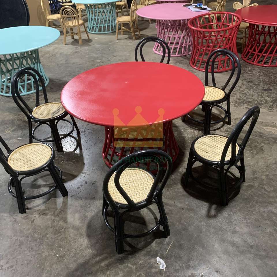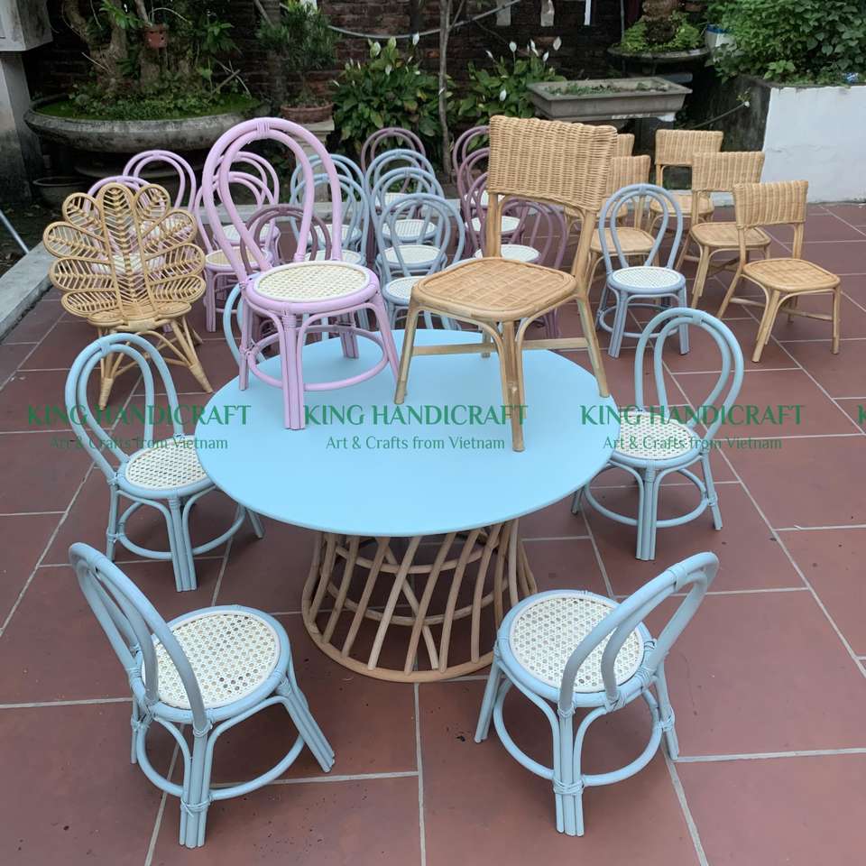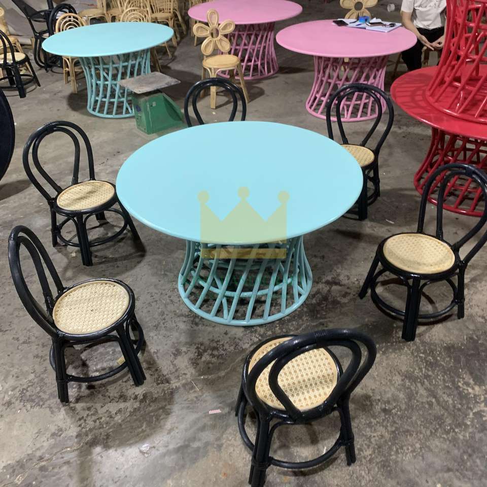ชุดโต๊ะทานอาหารหวายทำมือสำหรับเด็กเฟอร์นิเจอร์ลานหวายกลางแจ้งดีไซน์ทันสมัย