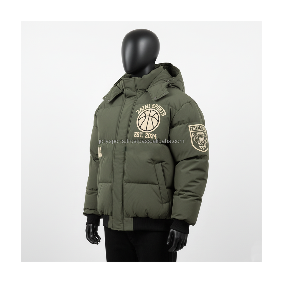 แจ็กเก็ตแบบปักโลโก้สำหรับผู้ชายผ้าโพลีเอสเตอร์ความหนาแน่นสูงสีเขียวมะกอกสำหรับฤดูหนาว
