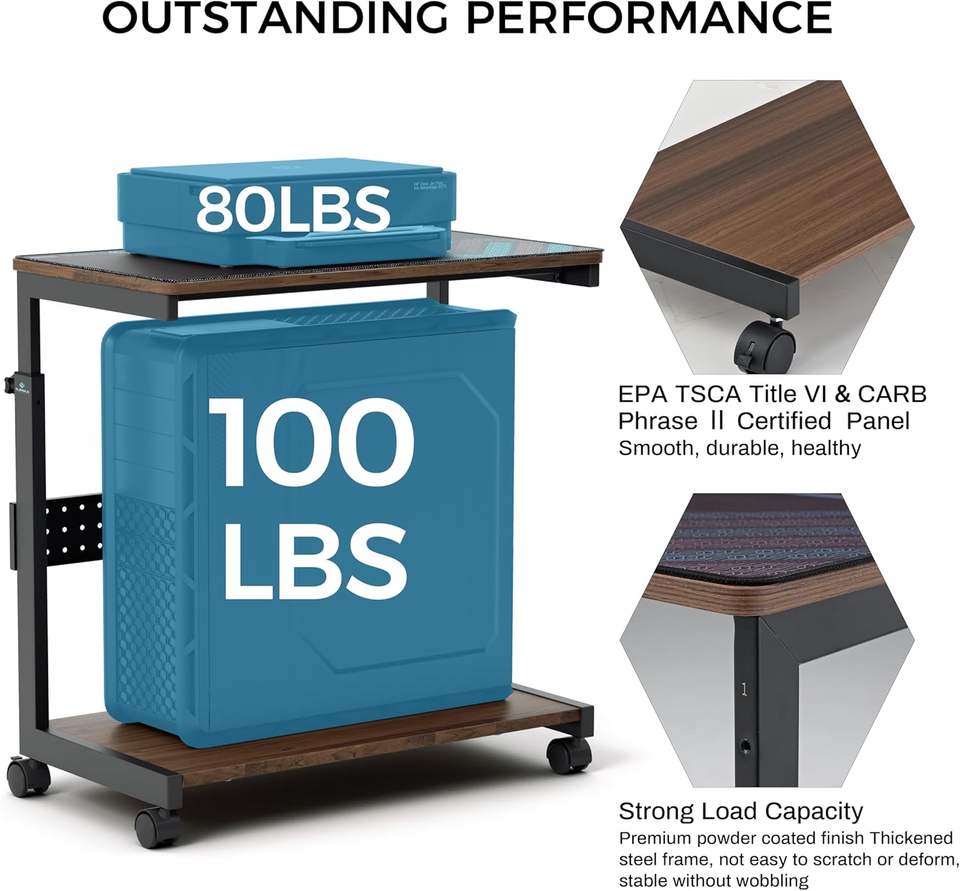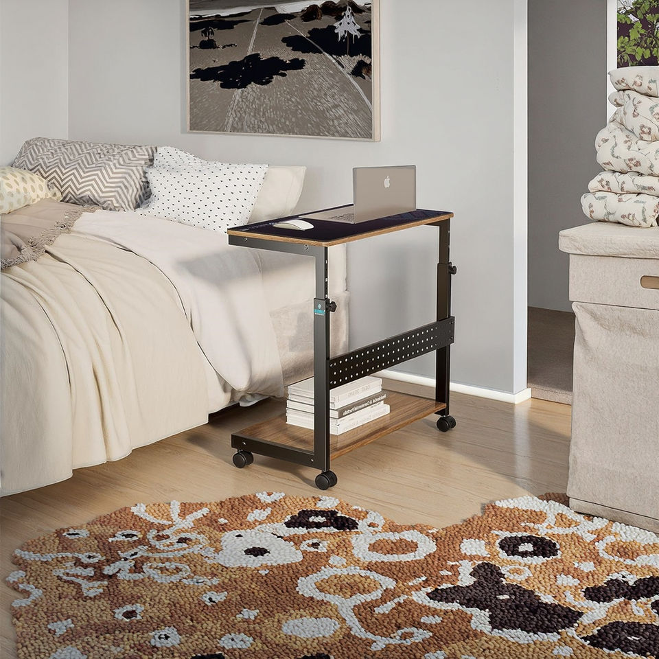 ขาตั้งคอมพิวเตอร์ทำจากไม้และโลหะ2ชั้นปรับความสูงได้พร้อมล้อล็อกสำหรับโซฟาเตียง PC ส่วนใหญ่